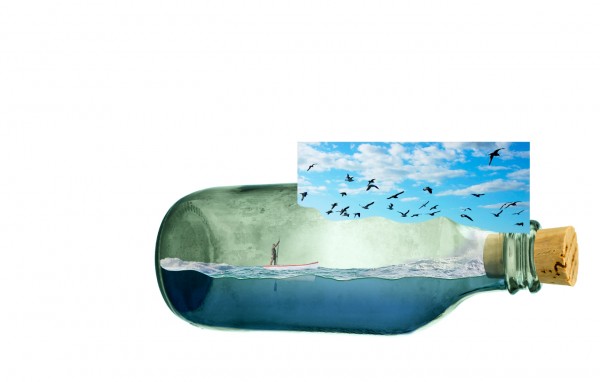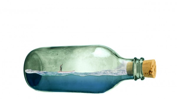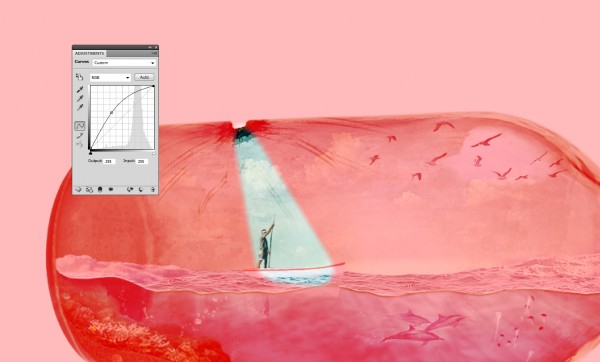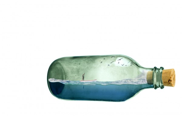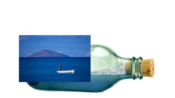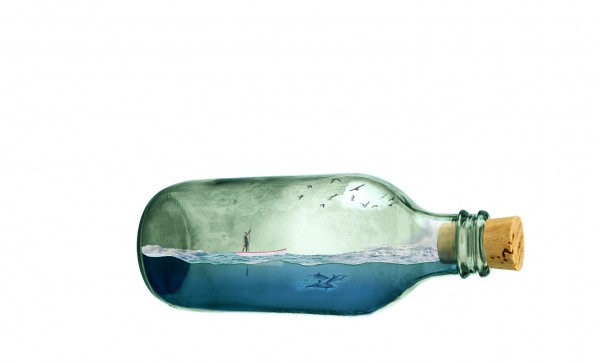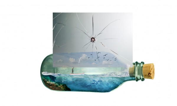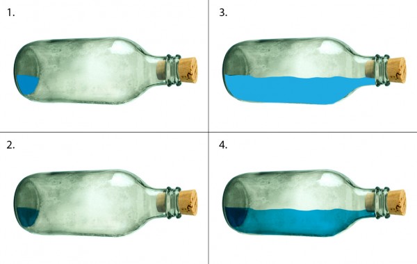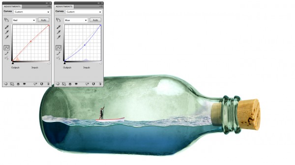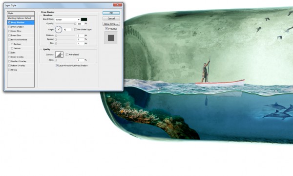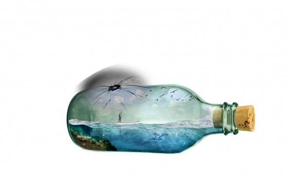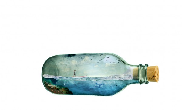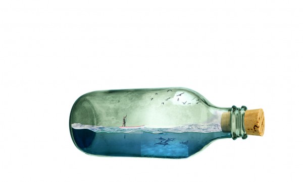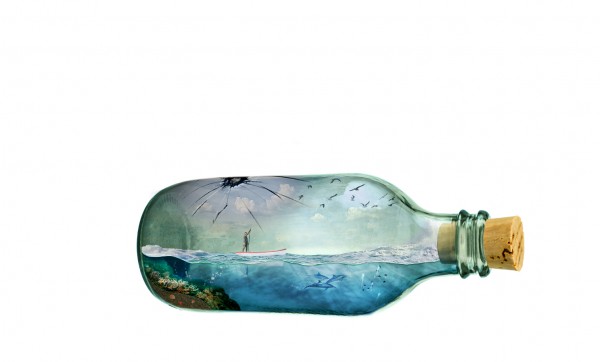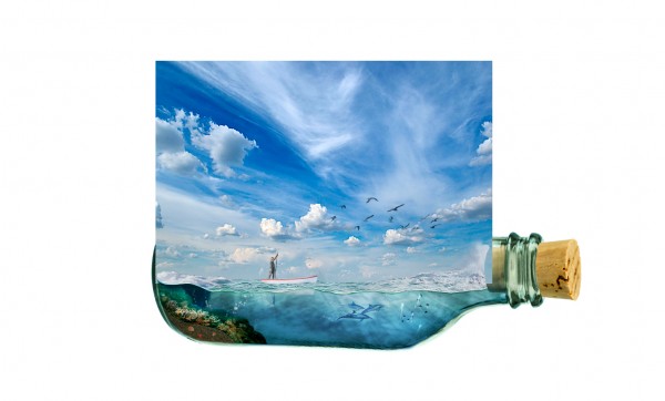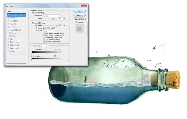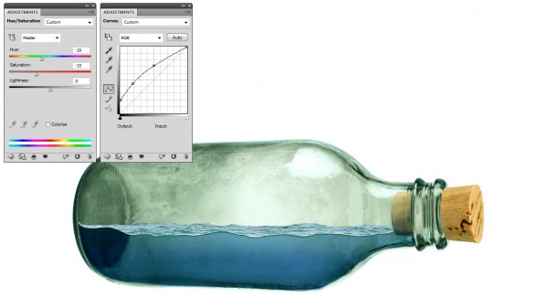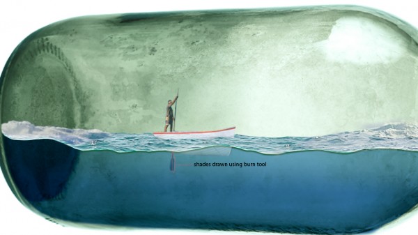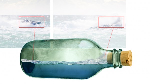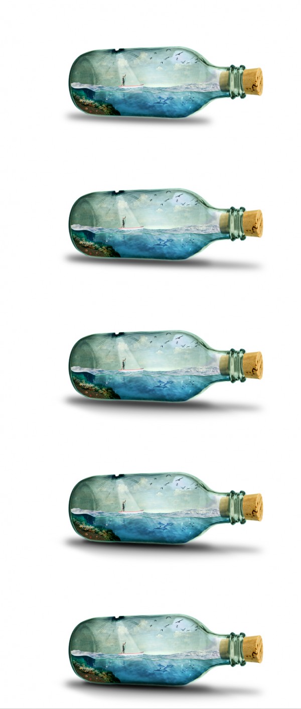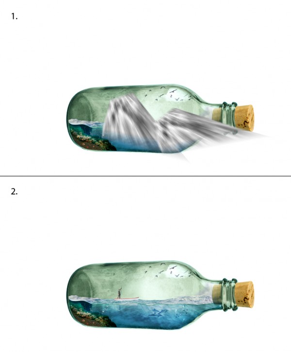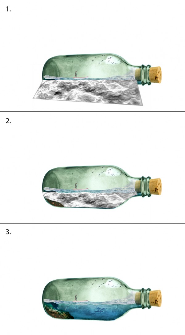 We can add splash effect in the bottle (sea water crashing), simply by using a portion of the rough seas image. Copy and mask off excessive areas like so: