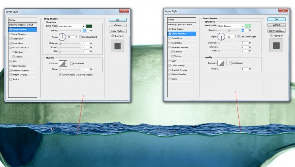 Erase areas as shown, and add in ‘Drop shadow’ blending option according to settings shown below: