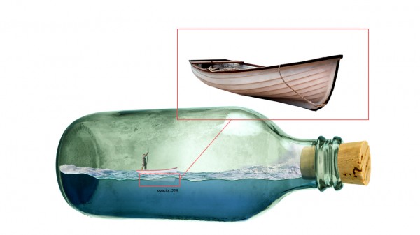 Add the bottom of a boat by using image of another boat. Once properly masked off and placed, set it’s opacity to 30%.