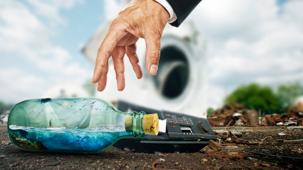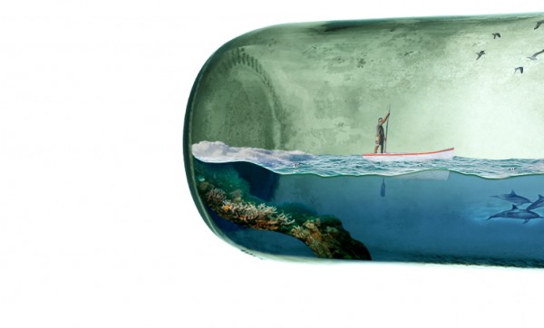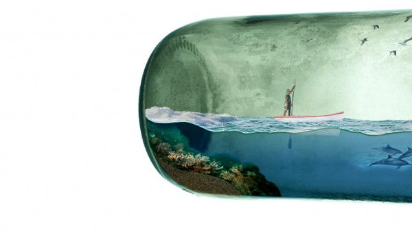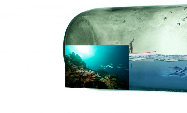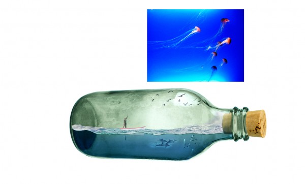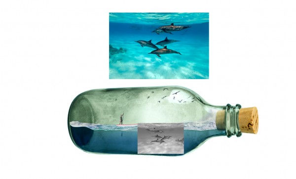 Import image of a coral reef and place it at the end of the bottle.