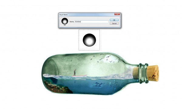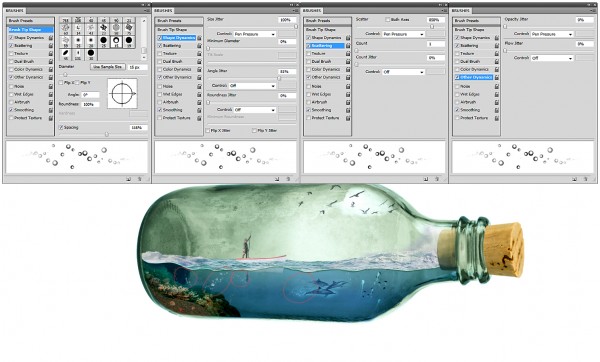 Use the brush settings as shown below (or similar settings), we can then start to paint our bubbles. Place some around the reef, the oar, and tails of dolphin.