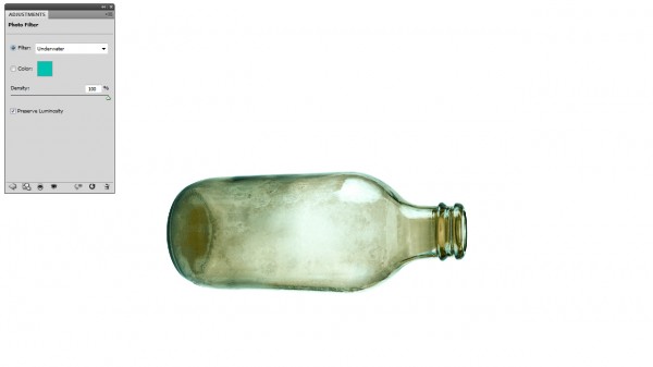 Tilt the bottle, and drag its blending slider to make the bottle more transluscent.