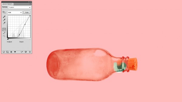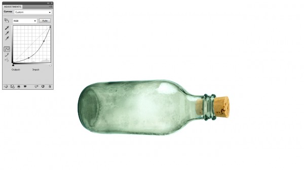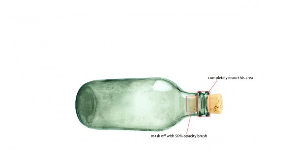 Mask the cork as if it were stuffed inside the bottle. Use a 50% brush to mask the portion of the cork that appears in the bottle to give it a more opaque look.